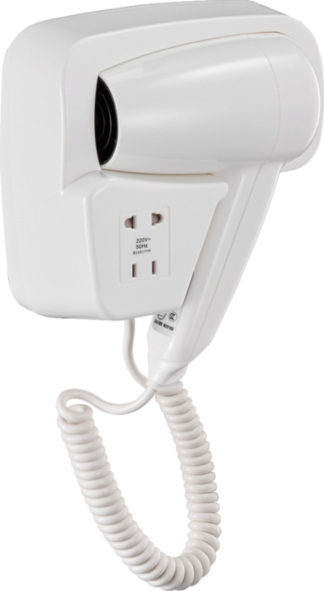 Фен Puff -1200В для волос, настенный, белый, 1,2 кВт, с доп. розеткой.